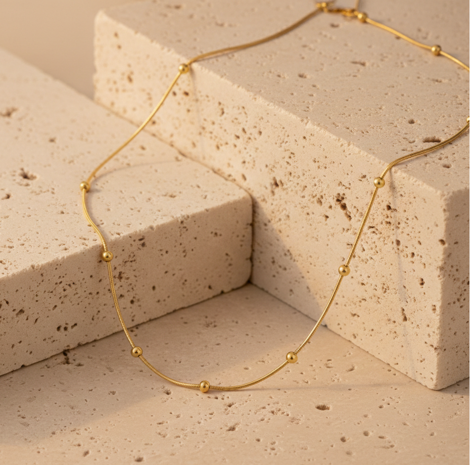 Design Sleek curved bar chain with delicate bead accents for a refined minimal look