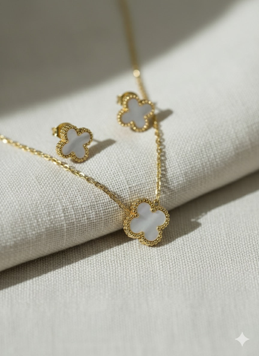 Product Name Clover Mother-of-Pearl Necklace & Earrings Set
